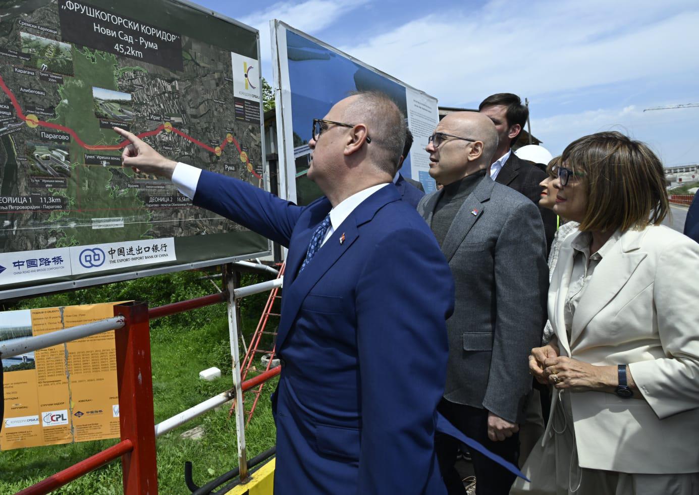 Подсетио је и да се испод Фрушке горе гради најдужи тунел у Србији, дуг 3,5 километара, који ће трајање вожње са 20 минута, колико сада аутомобилима треба да прођу кроз заштићену природну зону, смањити на пет минута.